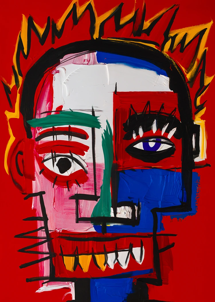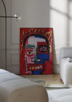Ако търсите интериорен елемент, който не просто запълва място, а доминира в пространството, нашият арт постер Abstract Mask е създаден точно за вас. Тази илюстрация е поклон пред неоекспресионизма – стил, който залага на грубите мазки, ярките цветове и дълбоката емоционалност. Композицията от наситено червено, кралско синьо и контрастиращо бяло, съчетана с хаотични, но прецизни черни контури, придава на постера изключителна визуална мощ.