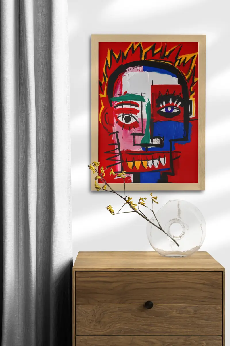 Защо този дизайн е артистично изявление? Арт постер Abstract Mask улавя духа на уличното изкуство, пренесено в галерия. Дизайнът напомня на маска или лице, разкъсано между различни състояния, което го прави идеален за пространства, излъчващи креативност и свобода. Той е перфектен акцент за модерна дневна, студио за дизайн или офис, където стандартните решения не са добре дошли. Този принт носи усещане за автентичност и бунтарство.