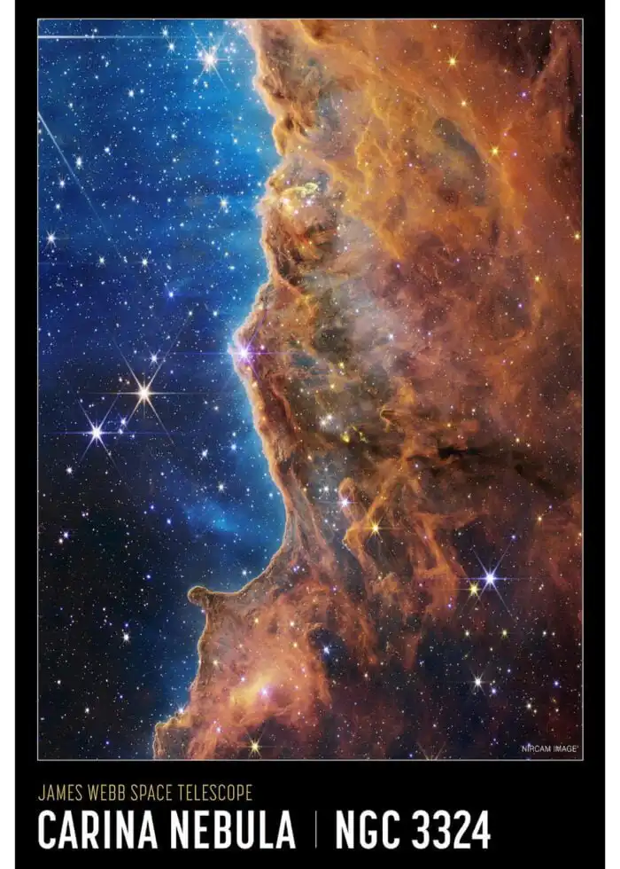 Carina Nebula Poster from NASA’s James Webb Space Telescope (NIRCam Compass Image)