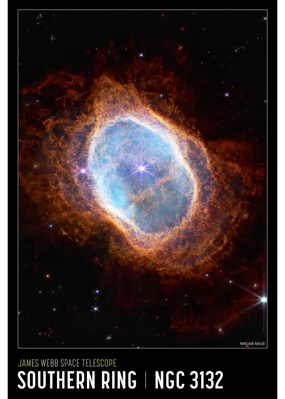 Southern Ring Nebula Poster from NASA’s James Webb Space Telescope (NIRCam Compass Image) Southern Ring Nebula Poster from NASA’s James Webb Space Telescope (NIRCam Compass Image)