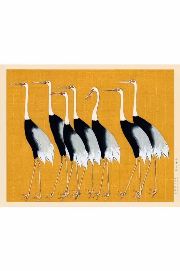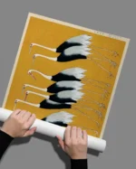 Постер „Традиционен портрет на стадо красиви японски жерави“