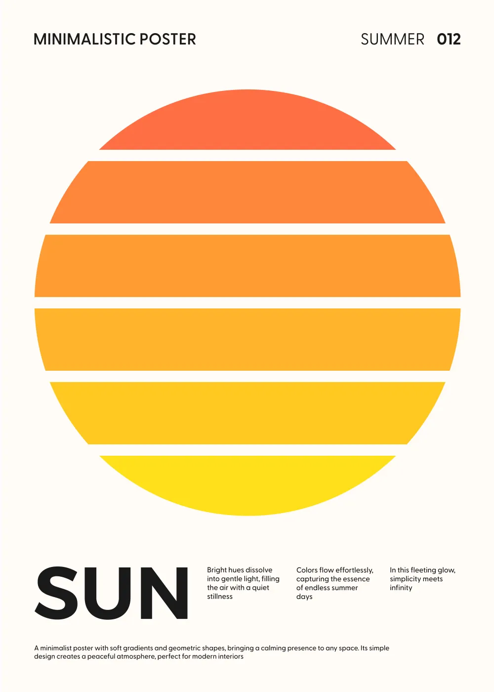 Постерът „Sun“ е част от колекцията Minimalistic Posters – серия, вдъхновена от простотата и хармонията на формата.