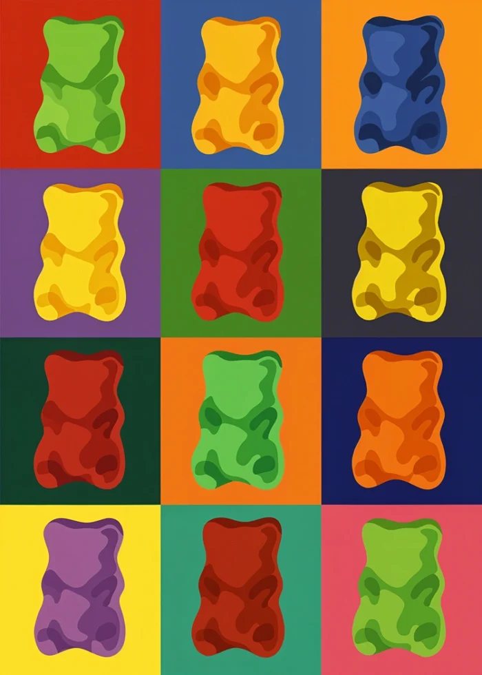 Арт постер Gummy Bears – Цветна експлозия в поп арт стил