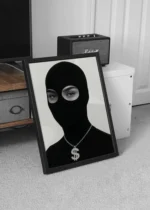 Изкуството е отражение на характера. Нашият арт постер Money Mask е мощно визуално изявление, вдъхновено от съвременната улична култура и високата мода. Този дизайн съчетава мистерията на анонимността с блясъка на успеха, създавайки неповторим фокусен център за твоя интериор.
