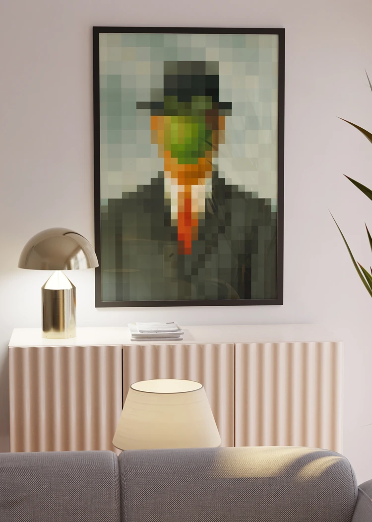 Арт постер Pixel Son of Man – Класическият сюрреализъм в дигитален формат
