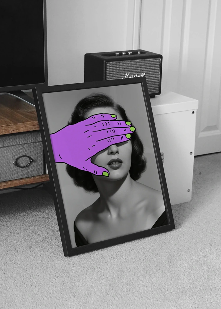 Понякога най-силното присъствие е това, което остава частично скрито. Нашият арт постер Purple Hide е визуално изследване на баланса между винтидж естетиката и съвременното илюстративно изкуство.