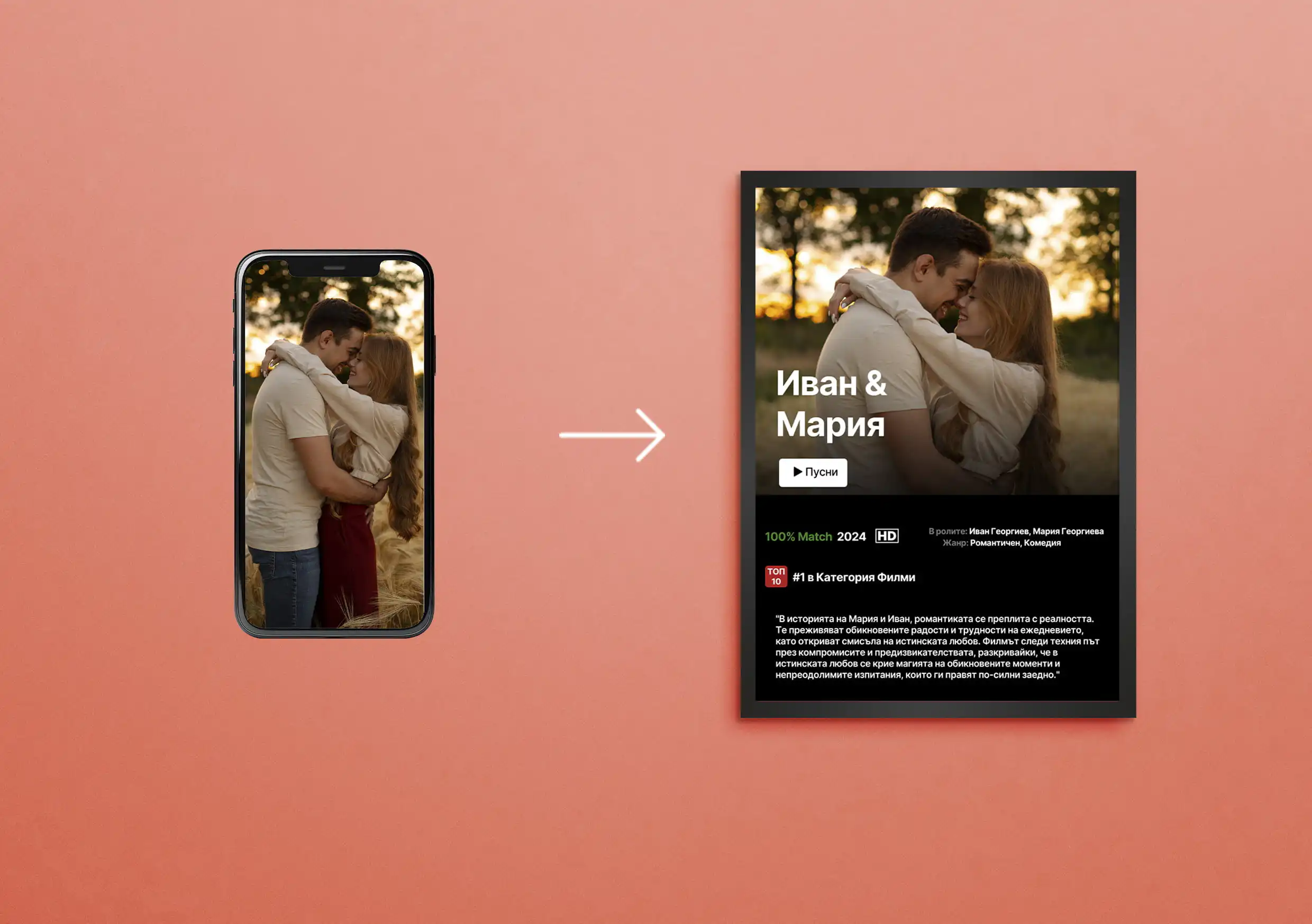 - Персонализиран филмов постер с Ваша снимка и послание.