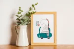 Детски Постер Динозавър с Кола